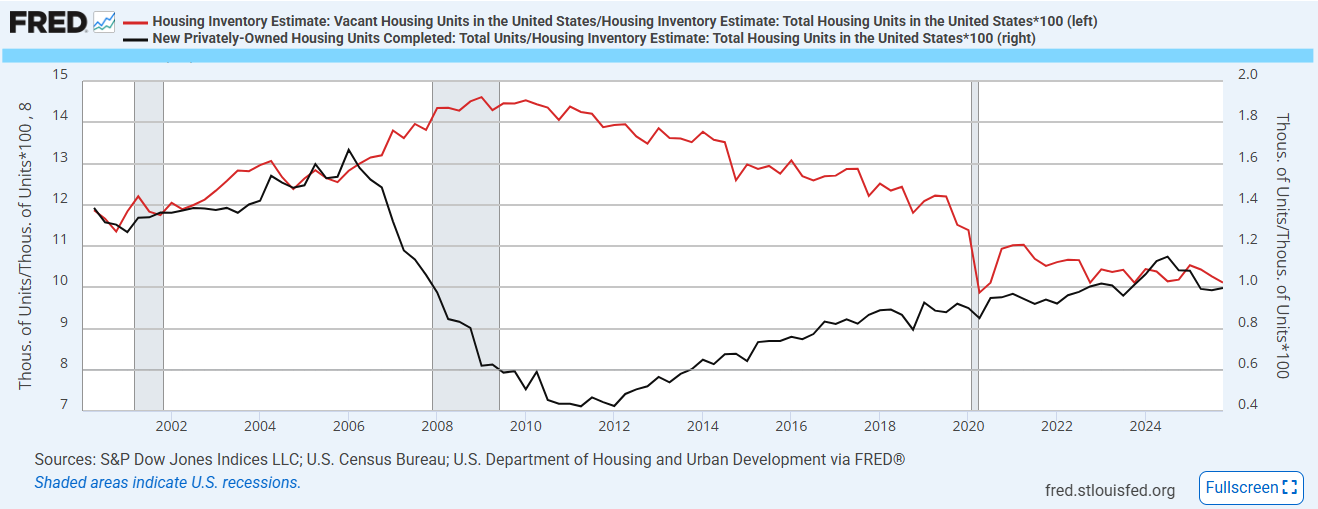 Unfortunately, we still live in a time where you can write a dozen papers about the generation defining rise in construction shown in Figure 7 in 2004 and 2005 while not noticing either the cause or the effect of the change in production from 2006 to 2010, or, attributing the 2006-2010 divot to the 2004-2005 increase. It’s really funny to look at Figure 7 and realize that is the conventional approach, still today in 2026.