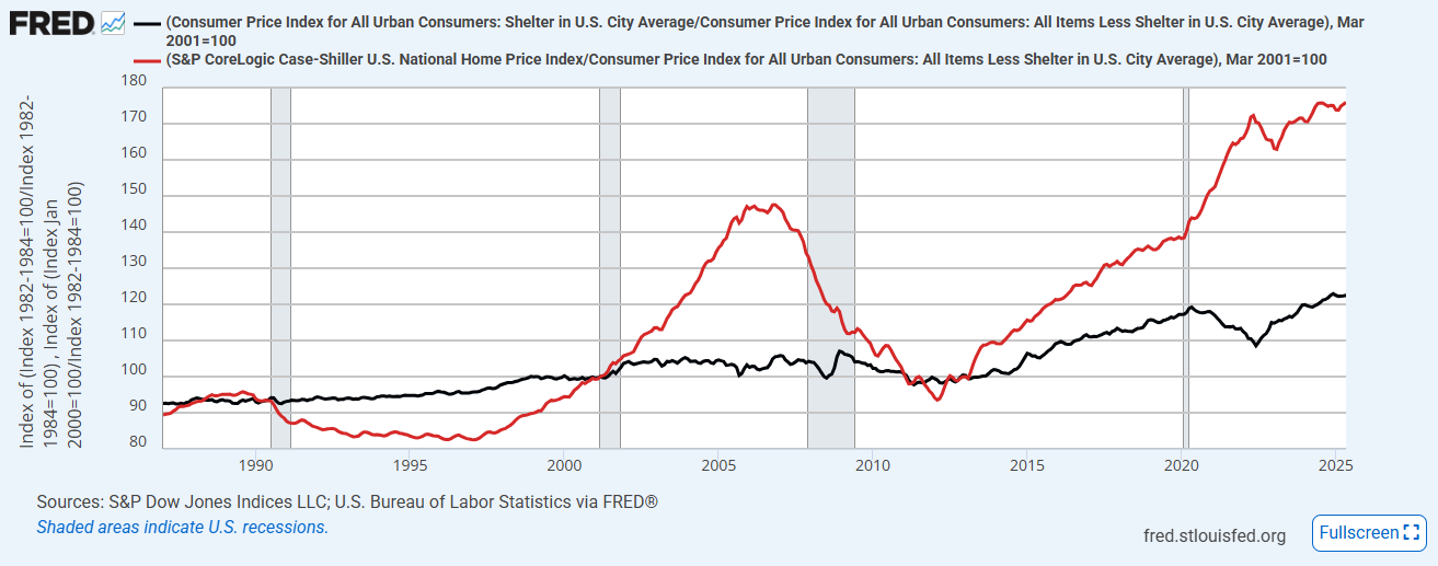 Before 2008 there was a regional shortage, so prices and rents were elevated regionally, but there wasn’t a national shortage of homes. Los Angeles had a shortage, so L.A. residents had to keep upping the “bribes they paid to the land” until the next family chose to move. When they moved, there was an affordable home in Phoenix for them. So, before 2008, the average price of homes across the country was elevated, but the total number of homes constructed wasn’t a national “shortage” in the pedantic sense of the word.