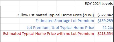 I suspect there are overlooked markets with positive lot premiums where there hasn’t been much recovery in new home construction, where the lot premium justified by home prices is, say, $40,000, but that premium isn’t reflected in land prices because there hasn’t been an active new construction market.