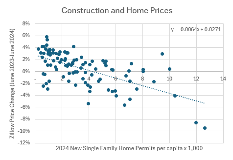 That’s what it looks like for more supply to lower prices. It means you don’t turn into a dysfunctional displacement factory like New York City. It means prices are unrelated to construction pace.