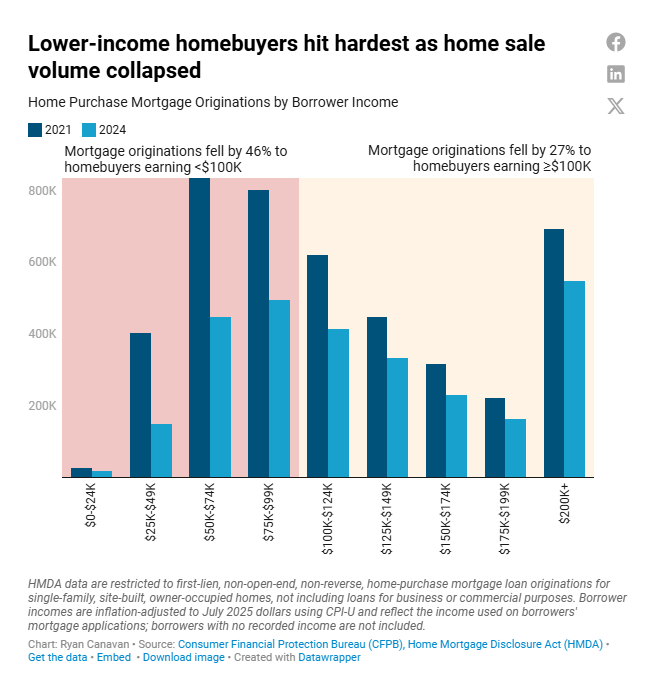 Finally, data scientist Ryan Canavan shared Figure 5 with me recently. At first, it seemed like good evidence that the rise in mortgage rates in 2022 had caused low tier home purchase demand to decline sharply.